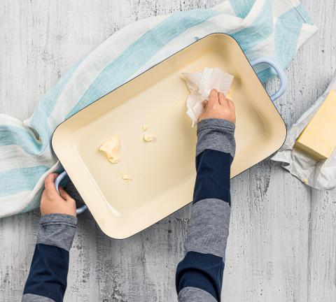 Teigwaren im siedenden Salzwasser ca. 5 Min. knapp al dente kochen, abtropfen. Form mit Butter einfetten, Teigwaren hineingeben.