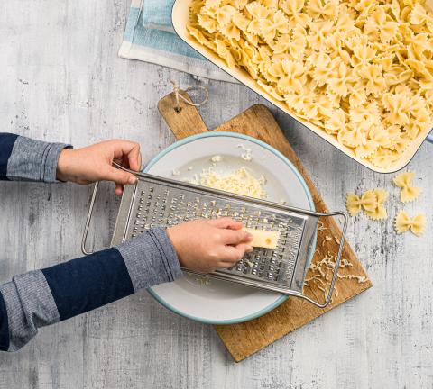 Petersilie grob schneiden, Käse an der Bircherraffel reiben.