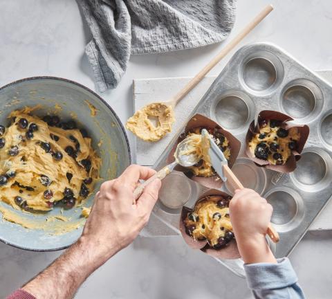 | Hinweis: | Die Muffins können auch mit tiefgekühlten Heidelbeeren zubereitet werden. |