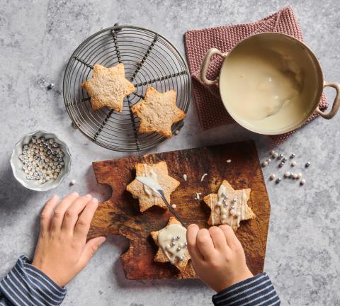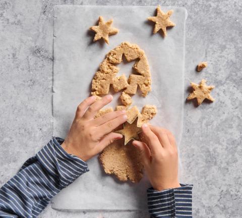 Teig portionenweise zwischen zwei Backpapieren ca. 1 cm dick auswallen, Sternen ausstechen, auf ein mit Backpapier belegtes Blech legen. Zugedeckt ca. 1 Std. kühlstellen.