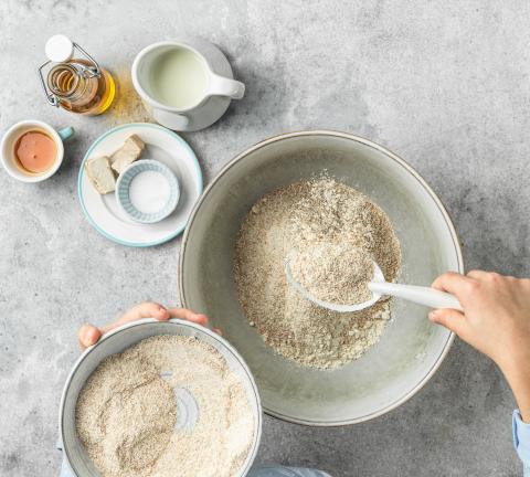 Mehle und Salz in eine Schüssel geben, mischen. Hefe zerbröckeln, beigeben. Milch, Öl und Birnel dazugiessen, mischen. Teig zu einem weichen, glatten Teig kneten. Zugedeckt bei Raumtemperatur ca. 2 Std. aufgehen lassen.