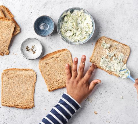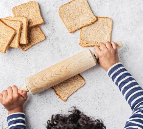 Toastbrotscheiben mit einem Wallholz etwas dünner auswallen.
