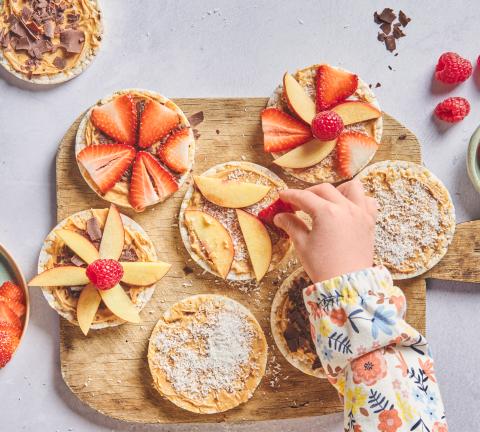| Tipp: | Die Reiswaffeln ca. 30 Min. vor dem Servieren bestreichen und belegen, sie werden sonst weich. |