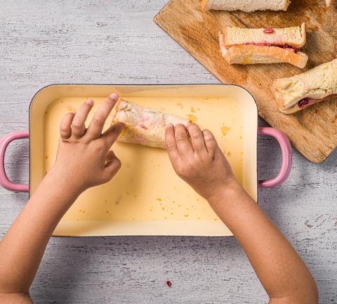 Place the rolls in the dish, allow to absorb for approx. 30 secs. Turn the rolls over and leave to absorb for a further 30 secs.