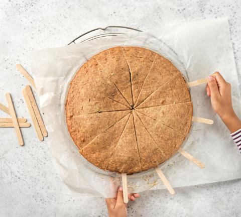 Slide the tin into the lower half of a cold oven and bake for approx. 45 mins. at 180°C. Remove from the oven, allow to cool slightly, remove the tin frame, leave to cool on a rack.