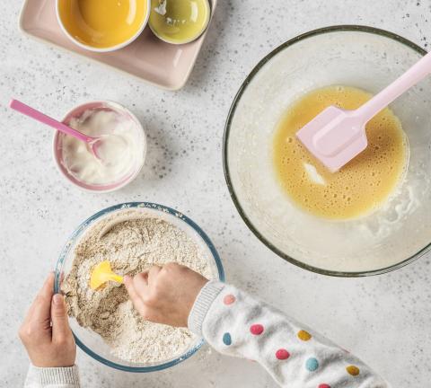 Empty the yoghurt into a bowl. Rinse out and dry the yoghurt pot, use as a measuring cup.