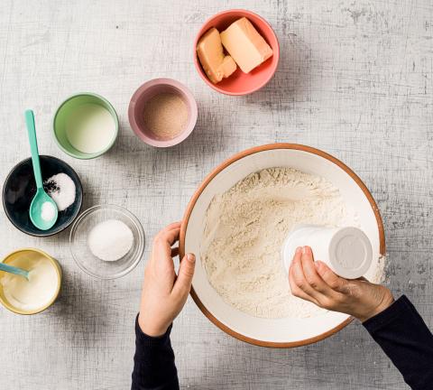 <Kids> Tip the yoghurt into a bowl, rinse out and thoroughly dry the yoghurt pot, use as a measuring cup. Spoon 2 tbsp of yoghurt into a small dish, cover and chill.