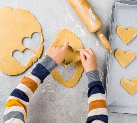 Cut out hearts (approx. 7 cm in diameter), place on two baking trays lined with baking paper.