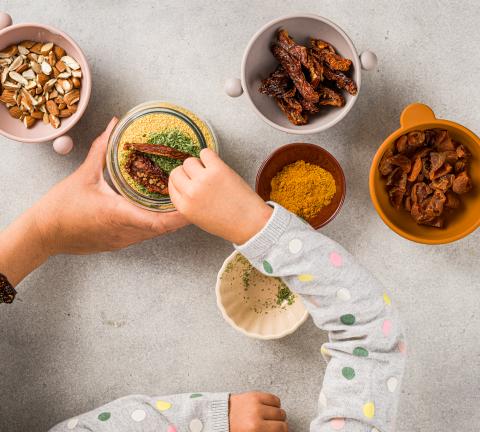 Pour the couscous into the jar. Add the tomatoes, curry powder and parsley along with the apricots and almonds, seal the jar.