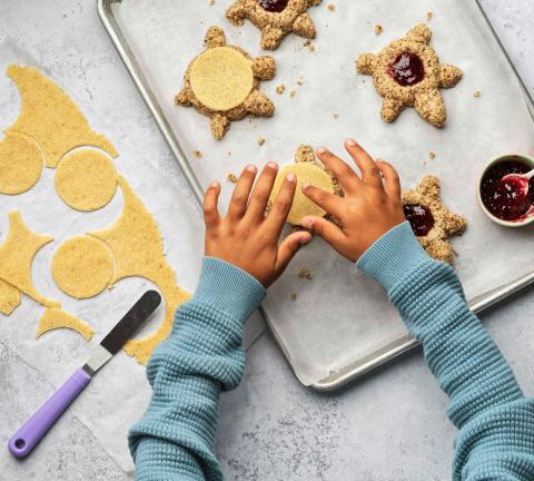 Dans un saladier, mélanger la farine et le sucre. Couper le beurre en morceaux, l'ajouter et frotter le tout entre les mains jusqu'à obtenir une masse friable. Entre deux feuilles de papier cuisson, abaisser la pâte en plusieurs morceaux sur 4 mm d'épaisseur., mettre au frais pendant env. 30 min.
