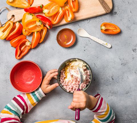 | Conseil: | Pour des poivrons farcis végétariens, remplacer les dés de jambon de la farce par un poivron snack coupé en dés. |