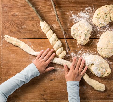 Grigliare il pane attorcigliato a fuoco medio o a temperatura media (ca. 200 °C) su tutti i lati per ca. 15 min., quindi lasciarlo intiepidire.