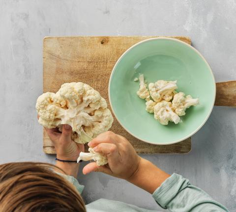 Ridurre ca. 300 g di cimette in pezzi ancora più piccoli. Spezzettare le foglioline dal prezzemolo, tagliare finemente. In una padella antiaderente scaldare l'olio. Unire il cavolfiore e cuocere per ca. 3 minuti. Abbassare il fuoco, unire il panko e cuocere per ca. 2 minuti. Unire il prezzemolo e il parmigiano, quindi continuare la cottura per ca. 2 minuti.